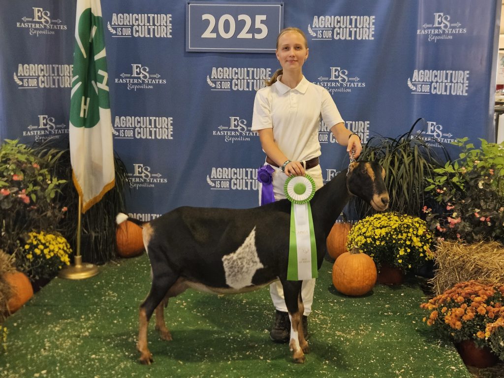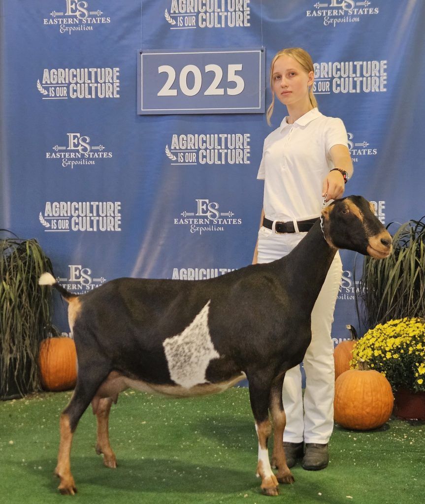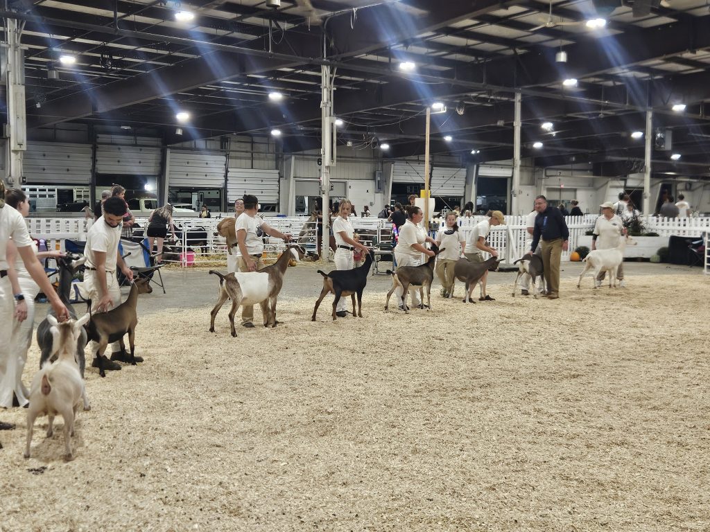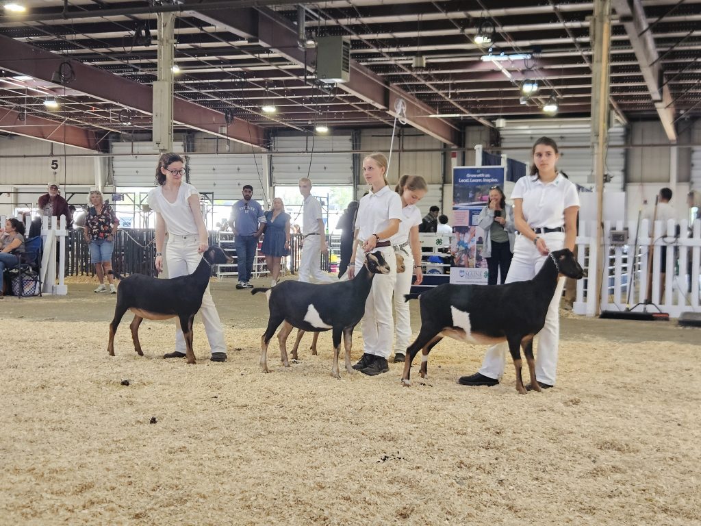 On Saturday, the breed classes were judged. This is a youth show and most breeds don’t have a lot of competition, although lamanchas are starting to become more popular. Of note, we get to see CH (pending) Majenli LK Carolina’s 2023 daughter and granddaughter who are in Maine at this show each year. Sawfish AS Porsche took Champion and Best of Breed Lamancha in the senior show and then Sawfish Bon Bon took Junior Champion Lamancha where Amanda had 4 of the 5 in the lineup.