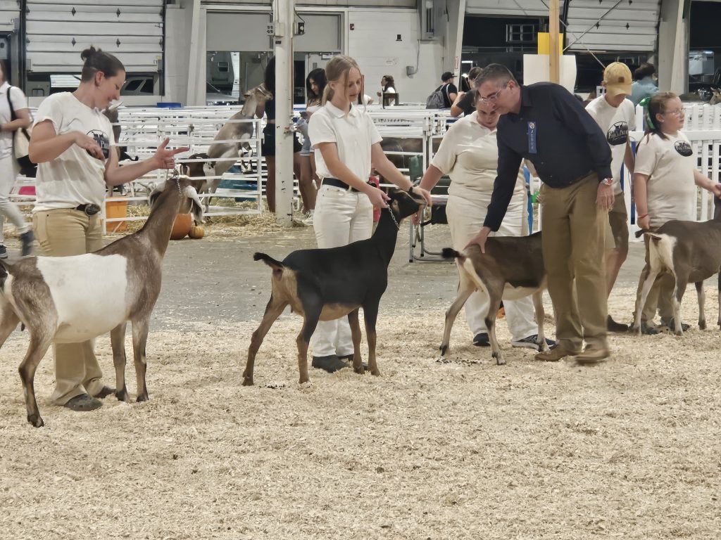 Another exhausting but amazing 4 days at the Big E has come and gone. With Quinn aged-out of 4-H, Amanda is the only youth left showing goats. Adding to the madness, I (Rob) returned from a work trip at 1130 on Thursday and we (Rob and Amanda) headed up to the Big E at 1 that afternoon. The Eastern States Exposition (aka Big E) is the defacto New England State Fair and this dairy goat show is the culmination of the show season for youth from the 6 New England states. I am part of the show committee assisting with the planning and execution as well as chaperone for some of the youth male participants.