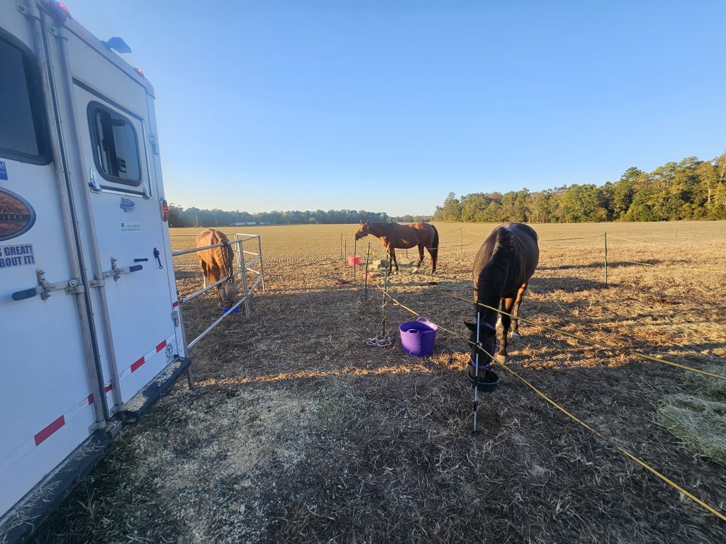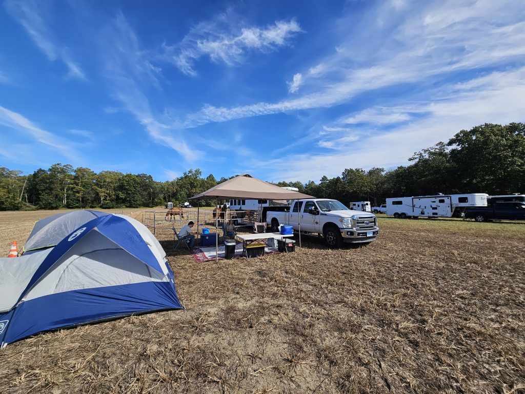We finally went to New Jersey for a distance riding competition. This is our 11th season doing AERC and ECTRA competitions and we had never competed in New Jersey. So Friday, I (Rob), Alex, and Amanda skipped work and school and loaded up Fiona, Mojo, and JJ for the 5 hour drive south. We arrived in camp just after 1 and had everything set up in about an hour. It was sandy!