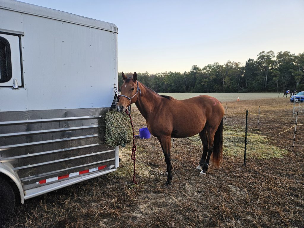 The afternoon consisted of letting the horses eat and recover from the trip, hanging out with friends around camp, and vetting in. Mojo had been pulled from the 50 at Pine Tree so we elected to enter the 30. It was also my first competition since Aug 2023. The ride meeting was at 6:30 and the kids were in tents by 7:30. I stayed up hanging out with friends and talking, but was also in bed by 8:30.
