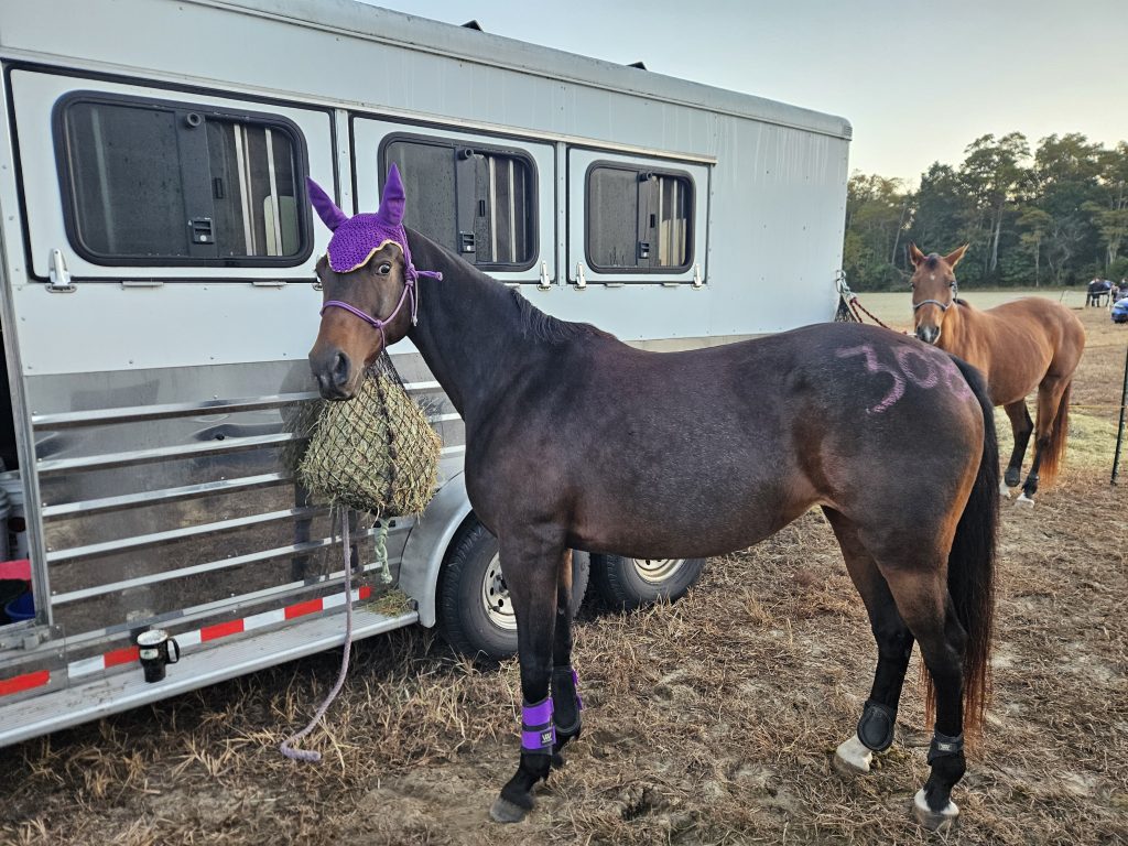 We gave the horses (and people) a break and then loaded up to drive home and pulled in about 9:30 pm. Overall, the ride was very well organized, trail markings were clear and easy to follow, there was plenty of water for the horses, and we really didn’t have any problems. While I don’t love the sand, it is nice to ride in some different types of terrain, so we will be going back to Mustang and probably some of the other NJ rides in the future. Thanks to Holly MacDonald and her team for putting on the event!