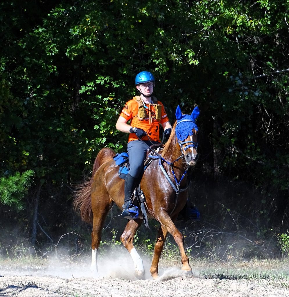 The second loop was really unremarkable, which is usually a good thing in distance riding. All the horses were eating and drinking. We didn’t have any big tack issues. The temperature was in the 70s but not humid. So all-in-all, the 12 miles clicked by pretty fast and we were back at the finish in under 2 hours. All Fiona, Mojo, and JJ all made pulse quickly and we were surprised to find ourselves in a 3 way tie for 7th place! Even better, the 30 miles brought Mojo to his 1,000 mile mark for AERC!
