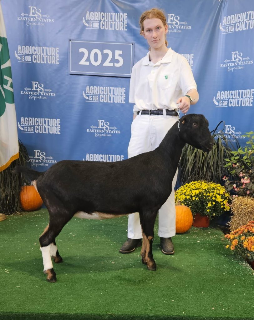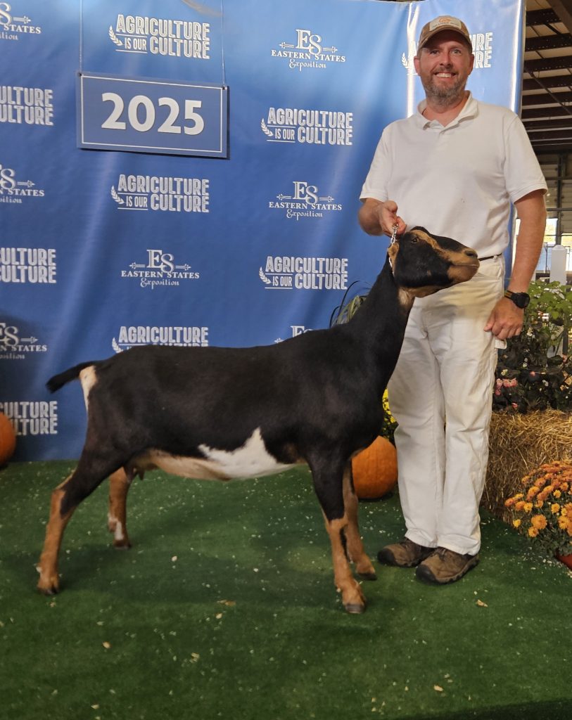 Bon Bon is Sawfish Ferrari’s 2025 doeling. She is black and tan and won her dry championship leg at the Big E in 2025. Bon Bon is staying a dry yearling for 2026.