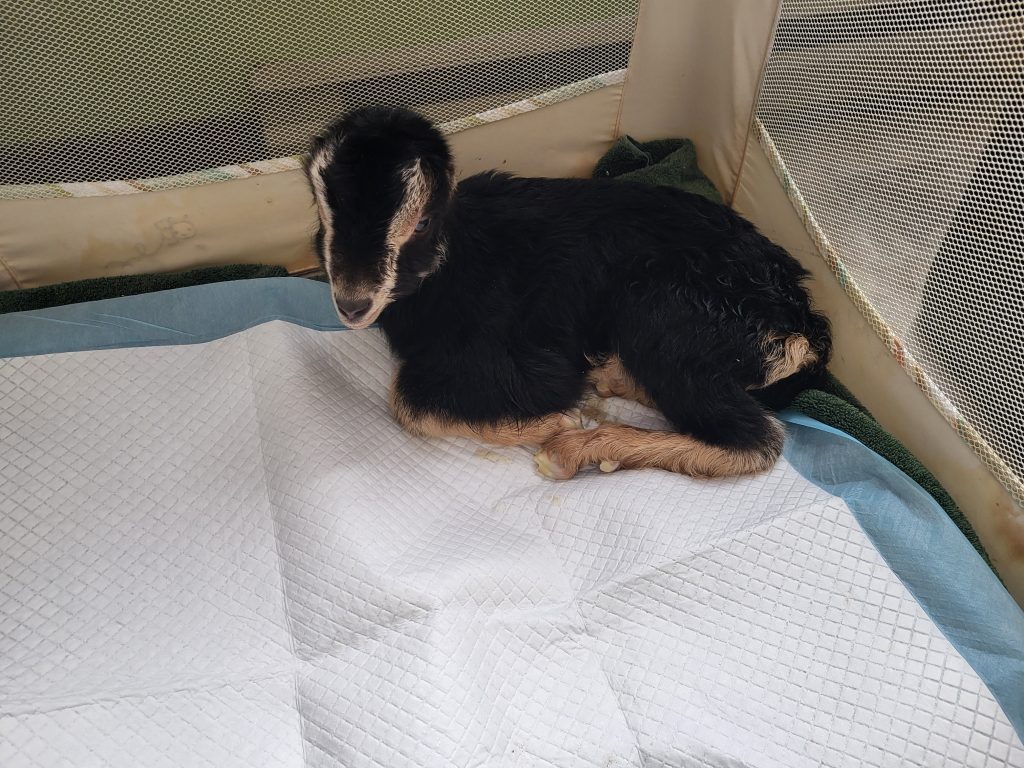 We expected to have a week before more kids hit the ground, however, during evening chores on Monday, we noticed CH Majenli LK Carolina had a very full udder and was signaling she was up next. Shortly after midnight, she delivered Sawfish Kahlua (doe) and Sawfish Jagermeister (buck). These two will have to be DNA’d because Carolina was exposed to two of our bucks. Kahlua is a deep brown/chocolate color with tan markings and Jagermeister is black with tan markings. Kahlua will be retained at this time.
