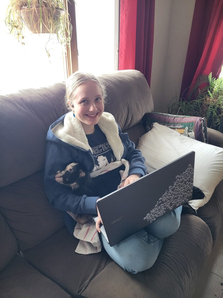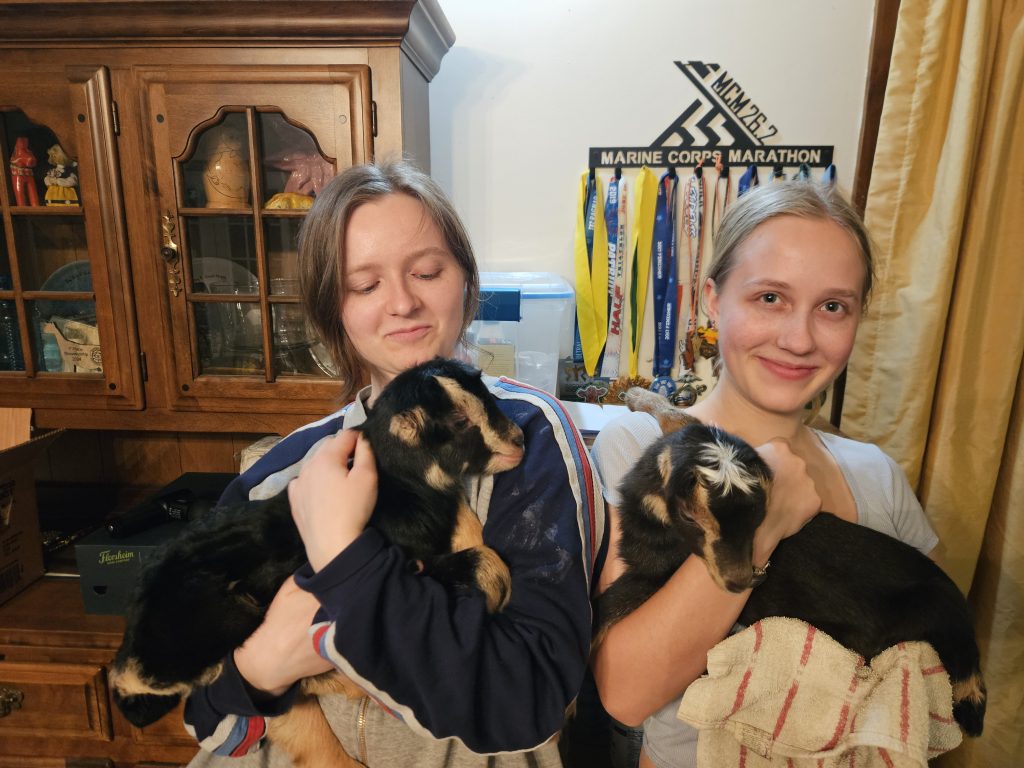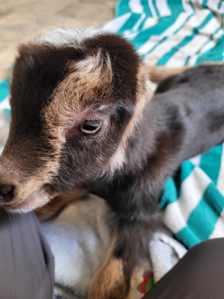 We got less than 4 hours of sleep last night and we were hoping to have an easy evening to recover. Lucky 4-Leaf E Red Hot Chili had other plans. She decided to kid in the middle of the afternoon and provided 2 bucks, Sawfish Porter and Sawfish Stout. With 3 of the 7 does having kidded, our count is 2 doelings, 5 bucklings. I would write more, but it’s time to feed baby goats again.